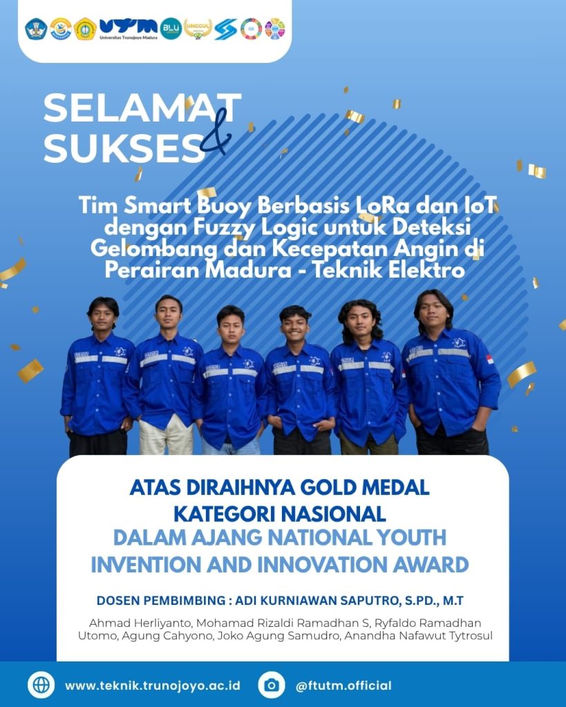 FAKULTAS TEKNIK – Bangkalan, 10 Oktober 2025, Prestasi membanggakan kembali diraih oleh mahasiswa Program Studi Teknik Elektro, Fakultas Teknik Universitas Trunojoyo Madura (FT UTM). Dua tim inovatif berhasil menyabet medali emas (Gold Medal) dalam ajang World Youth Invention and Innovation Award (WYIIA) 2025 dan National Youth Invention and Innovation Award (NYIIA) 2025 yang diselenggarakan oleh Indonesian Young Scientist Association (IYSA).
